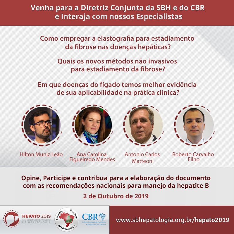 Atenção! Ocorrerá agora no início de outubro, de 02 a 04, o Congresso Brasileiro de Hepatologia 2019, em São Paulo. Hotel Tívoli Mofarrej.